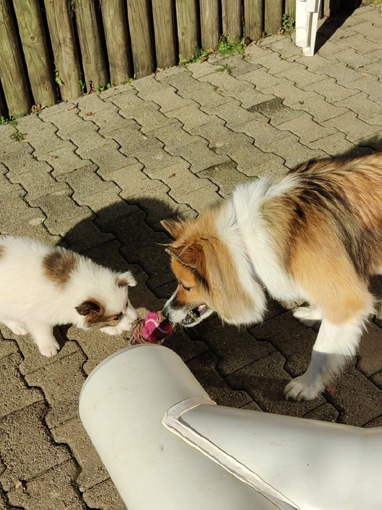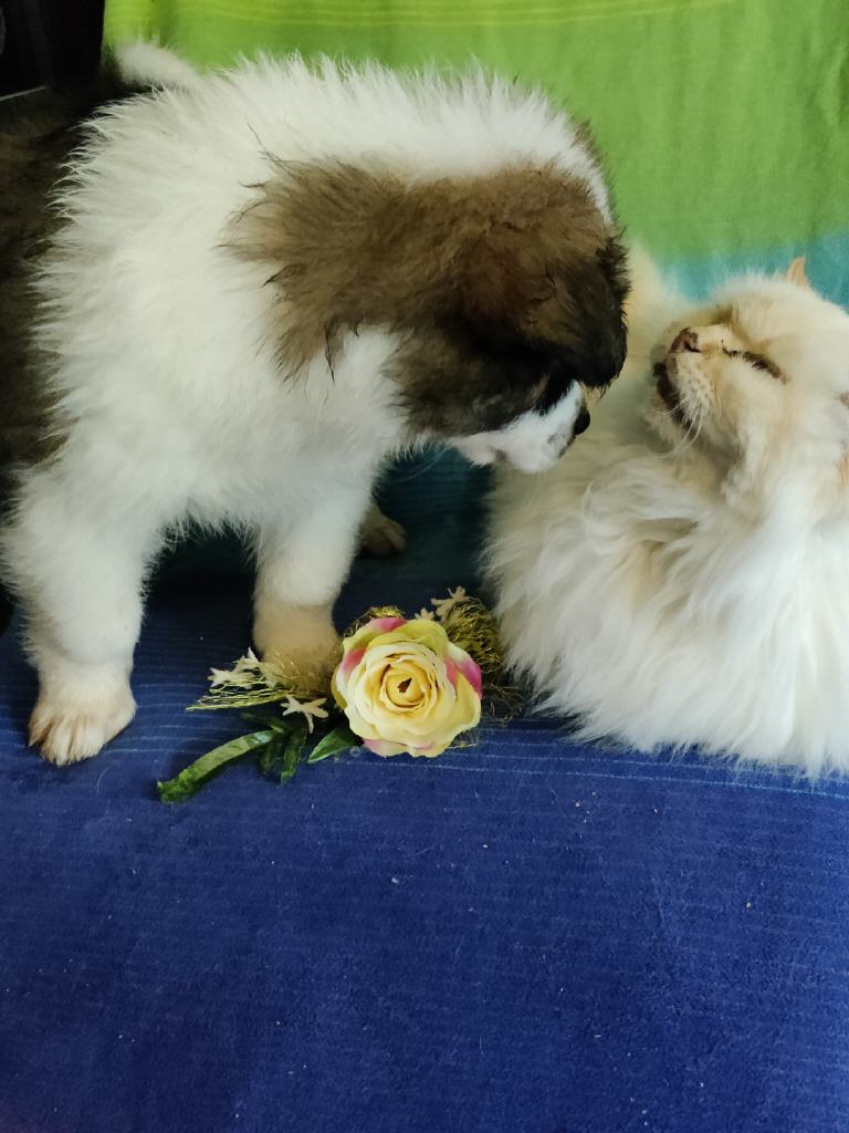 - Die Welpen kennen andere Hunde und Katzen und wachsen mit ihrem Vater gemeinsam auf.